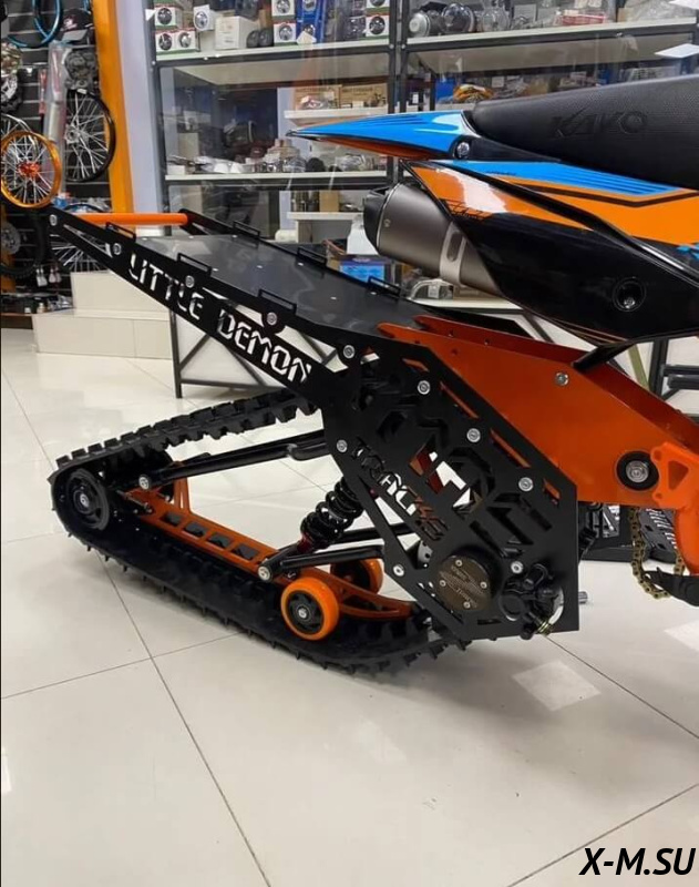 Little demon от YmasTracks — универсальный гусеничный комплект для внедорожных мотоциклов. Гусеничный мотоцикл (СНОУБАЙК) это, по сути, одноколейный снегоход. Вы получаете возможность продлить мото...