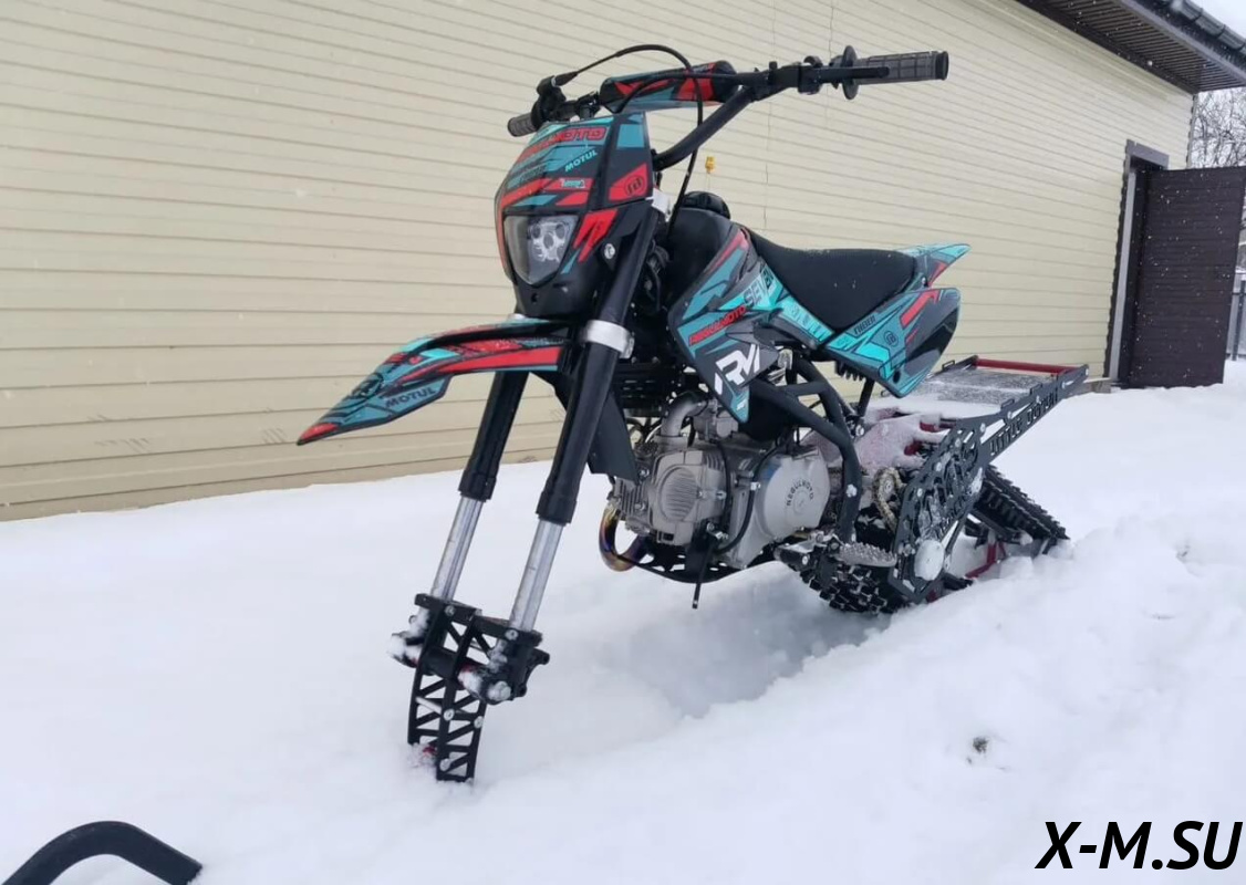 Little demon от YmasTracks — универсальный гусеничный комплект для внедорожных мотоциклов. Гусеничный мотоцикл (СНОУБАЙК) это, по сути, одноколейный снегоход. Вы получаете возможность продлить мото сезон и эксплуатировать мотоцикл не только летом но и зимой.